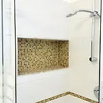 它有设施齐全的厨房和配坐浴盆 和淋浴的洗澡间.